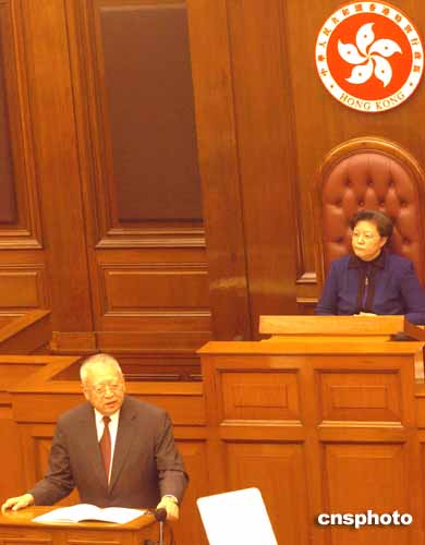 香港特區(qū)行政長(zhǎng)官董建華12日下午在香港立法會(huì)作《合力發(fā)展經(jīng)濟(jì)共建和諧社會(huì)》第八份施政報(bào)告。作者:趙振清