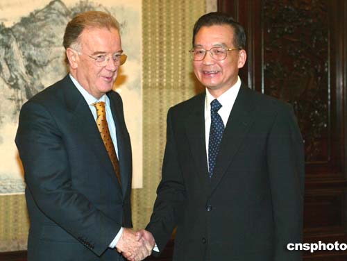 溫家寶說,中國政府高度重視發(fā)展雙邊經(jīng)貿(mào)關(guān)系,愿進(jìn)一步擴(kuò)大和提高中葡經(jīng)貿(mào)合作水平,雙方還可充分發(fā)揮各自優(yōu)勢,共同開拓國際市場。
