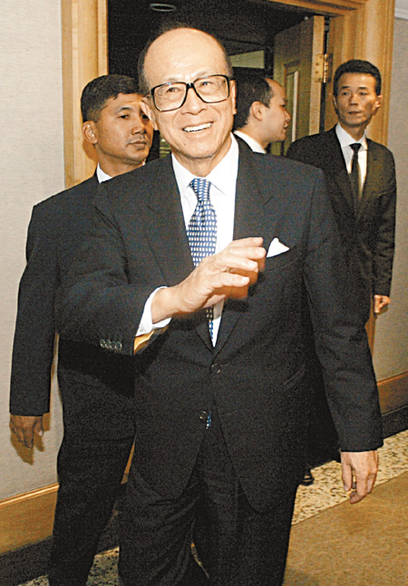 李嘉誠(chéng)目前為長(zhǎng)實(shí)、和黃等集團(tuán)主席及控股股東,單是這兩家公司的市值便合共超過(guò)四千六百億元。根據(jù)英國(guó)《金融時(shí)報(bào)》選出的全球二十五位最具影響力的億萬(wàn)富豪,擁有三千六百三十億元身家的微軟主席比爾·蓋茨繼續(xù)排榜首,而有亞洲首富之稱(chēng)的李嘉誠(chéng),該報(bào)估計(jì)其身家達(dá)九百六十七億元,是全球第十七位最具影響力的富豪。