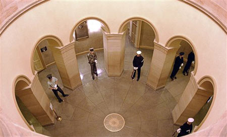 美國總統(tǒng)布什的連任就職典禮定于本月20日舉行。成功擊敗民主黨候選人克里的布什即將再次舉起右手,重復(fù)4年前的誓言。為保證儀式的順利進行,有關(guān)部門9日在國會大廈舉行了一次預(yù)演。