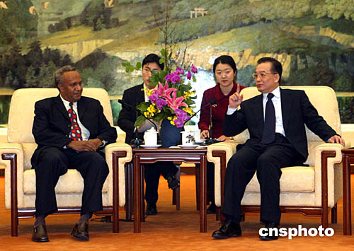 中新社北京一月十八日電(記者孫宇挺)國(guó)務(wù)院總理溫家寶今天在人民大會(huì)堂會(huì)見(jiàn)了來(lái)訪(fǎng)的瓦努阿圖副總理兼外長(zhǎng)薩多·基爾曼。