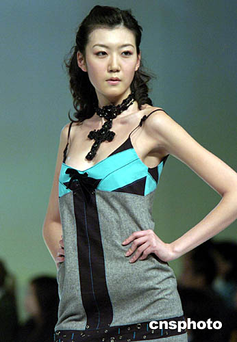 1月19日,香港會展中心舉行的“香港時裝節(jié)秋冬系列2005”上,模特演繹“獨家時裝表演”專場設計師秋冬系列服飾。作者:洪少葵