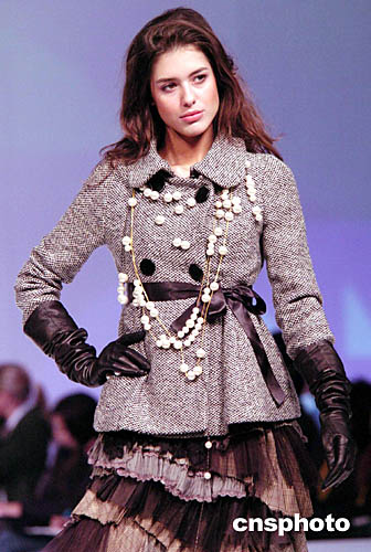 1月19日,香港會展中心舉行的“香港時裝節(jié)秋冬系列2005”上,模特在T型舞臺演繹“獨家時裝表演”專場設計師作品。作者:洪少葵