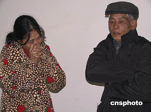 一月十九日,福建平潭十九歲勞工魏武在伊拉克被武裝分子綁架,其母薛金嬌(圖左)在接受記者采訪時(shí)希望中國(guó)政府能盡快救出其子。圖為當(dāng)?shù)乩先嗽谖杭覄裎恳恢笨奁难饗。作?王東明