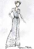 不過從白宮發(fā)布的設(shè)計圖來看,第一夫人此次的服裝似乎沒有什么新意可言,特別是在就職大典上的禮服更是沒有多少懸念,明顯的傳統(tǒng)保守選擇。白天是一件白色的凱斯咪套裝和搭配的套裙。晚上的宴會上,勞拉則會著一身銀藍色的薄紗曳地晚禮服,上墜有奧地利水晶,外配冰藍色外套。銀藍色的晚禮服是勞拉在四天慶典上的主打服飾。