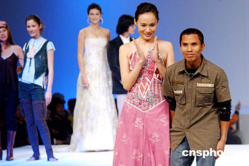 1月20日,在“香港時(shí)裝節(jié)秋冬系列”及“香港國際時(shí)尚薈萃”上,舉辦一場國際時(shí)裝設(shè)計(jì)師表演,圖為印度尼西亞時(shí)裝設(shè)計(jì)師A.Sofiyulloh與名模楊崢登臺謝幕。作者:洪少葵