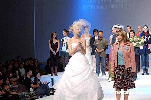 1月20日,在“香港時(shí)裝節(jié)秋冬系列”及“香港國(guó)際時(shí)尚薈萃”上,舉辦一場(chǎng)國(guó)際時(shí)裝設(shè)計(jì)師表演,圖為澳洲時(shí)裝設(shè)計(jì)師Roslyn Lakelin與模特登臺(tái)謝幕。作者:洪少葵