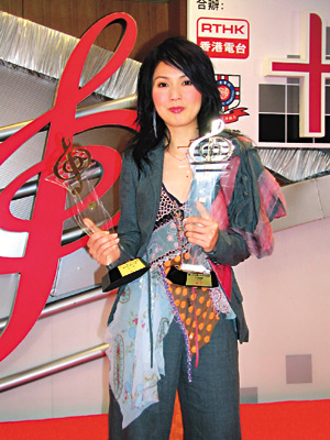 中新網1月21日電 據大公報報道,楊千嬅前晚罕有地以低胸裝出席“中文金曲頒獎禮”,與同樣打扮性感的容祖兒一同上臺頒獎,好像互斗性感。