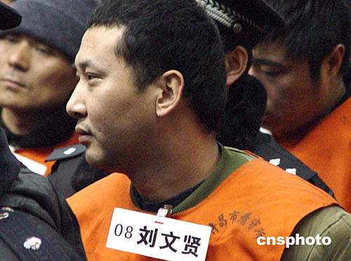 一月二十一日上午九時,許昌市中級人民法院對“中原涉黑第一案”——宋留根、馬獻洲、郝洪山特大涉黑團伙案,進行一審宣判。圖為主犯之一的劉文賢被判死刑,剝奪政治權利終身。以宋留根為首的涉黑犯罪團伙是五十年來河南最大的犯罪集團。作者:胡珂