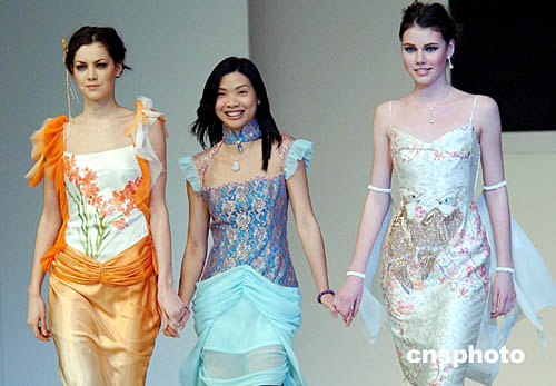 1月21日,在“香港時(shí)裝節(jié)秋冬系列”及“香港國際時(shí)尚薈萃”上,舉辦第二場(chǎng)“國際時(shí)裝設(shè)計(jì)師表演”,展示來自香港、澳洲、印度尼西亞10位才華橫溢的時(shí)裝設(shè)計(jì)師作品。圖為香港時(shí)裝設(shè)計(jì)師Simone Ng與模特登臺(tái)謝幕。作者:洪少葵