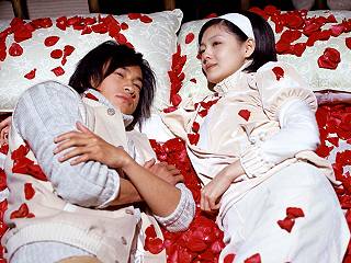 但也因?yàn)椴皇,何?rùn)東與大S幾乎沒(méi)話講,還好何潤(rùn)東之前與藍(lán)正龍合作過(guò)“中華英雄”,兩人還常私下相約一起去打撞球,提到藍(lán)正龍,大S也跟著話變多,漸漸地,藍(lán)正龍竟成為兩人的共通話題。拍過(guò)多部戲,何潤(rùn)東在戲中難免應(yīng)劇情需要有一些親熱的鏡頭或床戲,但唯獨(dú)這一次與大S拍床戲,令他既尷尬又痛苦,原來(lái),拍攝這場(chǎng)床戲的前一天,何潤(rùn)東才和藍(lán)正龍拍完“中華英雄”,面對(duì)好友女友,何潤(rùn)東心中難免有顧忌,即使和大S躺在同一張床上,也幾乎不敢碰對(duì)方,偏偏還撒了一床的玫瑰花,宛如早期電視劇的床戲,何潤(rùn)東苦笑說(shuō):“沒(méi)辦法,朋友妻不可戲啊。”