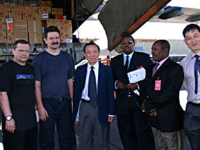 中新網(wǎng)1月24日電 中國(guó)外交部消息,2005年1月23日,中國(guó)政府捐贈(zèng)給非洲海嘯受災(zāi)國(guó)索馬里和肯尼亞的一批總價(jià)值1085萬(wàn)元人民幣的救災(zāi)物資空運(yùn)抵肯尼亞首都內(nèi)羅畢。