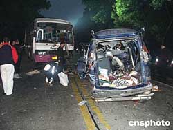 中新社肇慶一月二十七日電(黃耀輝 吳文頌)今天凌晨四時(shí)許,國道三二一線廣東高要小湘孔灣路段發(fā)生一宗大客車與小客車相碰撞的特大道路交通事故,事故造成小客車上七人當(dāng)場死亡,一人送醫(yī)院途中死亡。