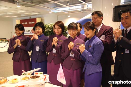 圖:臺(tái)灣“華航”首航北京春節(jié)包機(jī)機(jī)組亮相