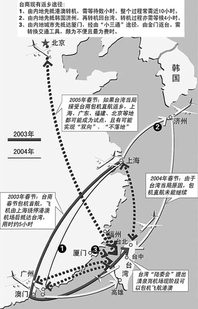 圖文資料:2005年春節(jié)臺(tái)商包機(jī)直航路線示意圖