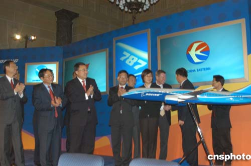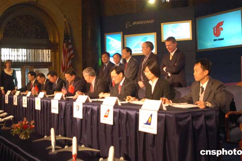 根據(jù)雙方當(dāng)天在美國(guó)商務(wù)部簽署的框架協(xié)議,中國(guó)國(guó)航、東航、南航、海南航空、廈門航空、上海航空將從波音公司訂購(gòu)六十架波音七E七飛機(jī),按照平均目錄價(jià)格計(jì)算,此協(xié)議總價(jià)值七十二億美元。這批飛機(jī)將從二00八年開始陸續(xù)交付使用。