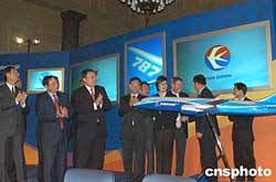 中國民航史上最大的一筆訂單二十八日在華盛頓簽訂,中國國航、東航、南航、海南航空、廈門航空、上海航空六家航空公司將進(jìn)口價(jià)值七十二億美元的六十架最新型波音787飛機(jī)。這批飛機(jī)將從二00八年開始陸續(xù)交付使用。