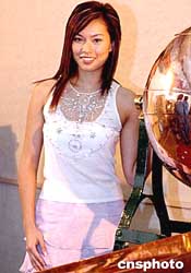 2004年度香港小姐亞軍朱慧敏小姐,日前參加香港女童軍總會(huì)的攪珠頒獎(jiǎng)儀式,為活動(dòng)造勢。
