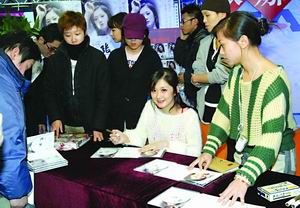 不少歌迷為了能搶占到與娜拉親密接觸的最佳位置,一大早便趕到音像店內(nèi)等候。當(dāng)娜拉帶著招牌式的可愛笑容現(xiàn)身時(shí),現(xiàn)場(chǎng)數(shù)百名歌迷立刻炸開了鍋。簽售過程中臺(tái)下眾人你推我攘好不熱鬧,拿到簽名的歌迷興奮地聚在一起展示自己的“戰(zhàn)果”,即便是不買專輯的顧客也駐足在人群外觀看。現(xiàn)場(chǎng)近乎失控的局面讓稀有文化工作人員一邊忙著維持臺(tái)上的秩序,一邊忙著呼吁臺(tái)下歌迷不要擁擠耐心等待。無奈娜拉的無敵萬人迷魅力,讓不少原本負(fù)責(zé)維持秩序的音像廣場(chǎng)工作人員和保安都被徹底征服,不時(shí)地伸長(zhǎng)脖子去看臺(tái)上的娜拉。而記者通道的管理人員只顧把關(guān)記者的進(jìn)入,絲毫不理會(huì)周遭擁擠的歌迷。(朱雅清)