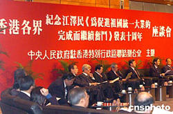 香港各界人士31日舉行紀(jì)念江澤民《為促進(jìn)祖國(guó)統(tǒng)一大業(yè)的完成而繼續(xù)奮斗》發(fā)表十周年座談會(huì)。作者:宋吉河