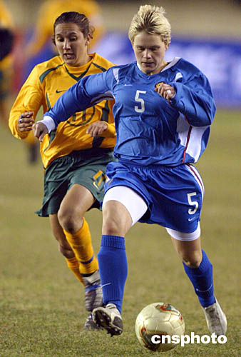 二月一日,二零零五年泉州四國女足錦標賽在福建泉州進行了最后一天的比賽,在澳大利亞隊與俄羅斯隊的比賽中,俄羅斯隊零比五不敵澳大利亞隊。中新社記者:盛佳鵬