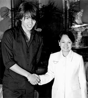 菲律賓媒體當時報道稱,言承旭旋風(fēng)是在菲律賓進行兩天一夜的宣傳行程中刮起的,拜《流星花園》所賜,他在當?shù)氐闹群芨,連總統(tǒng)阿羅約也邀約與他會面。阿羅約坦言,她看過《流星花園》,對言承旭能來菲律賓感到十分開心與歡迎,并稱贊他長得很英俊,比電視里還好看。言承旭有些不好意思,以流利的英文感謝總統(tǒng)的支持,也表達了對她的敬佩。