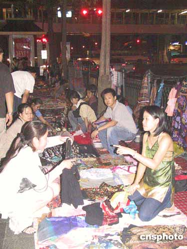 夜晚的曼谷則霓虹閃爍,一派歌舞升平景象。市中心五彩燈下的人行道上,擺滿了各式旅游商品,游人穿梭不息。在記者住宿的拉馬達街,晚上十二點多,“全家福”燒烤大排檔依然熱鬧。他們和附近的迪廳、酒吧等娛樂場所一樣,要“鬧”到第二天凌晨二時才會打烊。隔街的“七一一”連鎖便利店,二十四小時營業(yè),不時有興致沖沖的購物者推門而入。