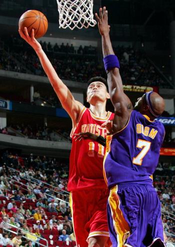 中新網(wǎng)2月7日電 北京時(shí)間2月7日凌晨,NBA常規(guī)賽繼續(xù)進(jìn)行,在豐田中心進(jìn)行的比賽中,比賽結(jié)束前15.3秒,姚明關(guān)鍵的兩次罰球命中,使得火箭反超比分,在主場(chǎng)以103-102戰(zhàn)勝洛杉磯湖人,取得四連勝,而湖人則遭遇兩連敗。姚明出場(chǎng)35分鐘,18投9中拿下全隊(duì)最高的23分,另外還得到8個(gè)籃板、4次封蓋。