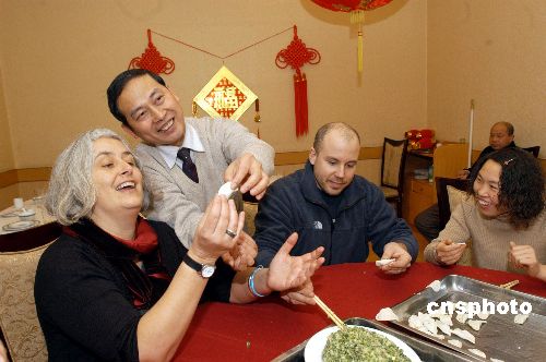 2月7日,“無(wú)國(guó)界醫(yī)生組織”湖北襄樊艾滋病治療和關(guān)懷項(xiàng)目辦公室的外國(guó)專家們,度過(guò)了一個(gè)充滿濃郁中國(guó)氣息的節(jié)日。新西蘭的琳達(dá)女士、瑞典的尼科拉斯先生同中國(guó)同行一起掛中國(guó)結(jié)、包餃子,用筷子吃中餐,感受地道的中國(guó)年。作者:邱厚強(qiáng)