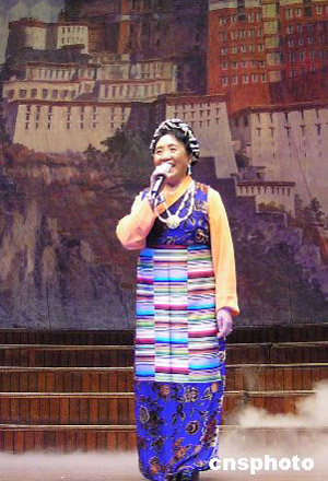 著名歌唱家才旦卓瑪在悉尼放聲高歌《北京的金山上》。2005年悉尼華人春節(jié)歌舞晚會(huì)11日在悉尼市政廳隆重舉行,中國(guó)民族藝術(shù)團(tuán)精彩絕倫的表演,為澳洲華僑華人帶來(lái)新春的祝福和歡樂。30名藏族優(yōu)秀藝術(shù)家的表演,贏得陣陣掌聲。晚會(huì)結(jié)束時(shí),中國(guó)駐悉尼總領(lǐng)事(大使銜)邱紹芳和悉尼僑領(lǐng)登上舞臺(tái),與演員們親切握手。作者:劉雨生