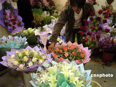 情人節(jié)前夕,錫城市場上的各種情人應節(jié)禮品、紅色玫瑰等受到年青人的追捧。無錫一些商家推出的許愿墻上許心愿活動異常火爆,對對情侶紛紛買來許愿牌、同心結(jié),寫上祝福貼在各種“心”形墻上,希望能將情意綿綿的情話捎給心愛的人。作者:潘正光