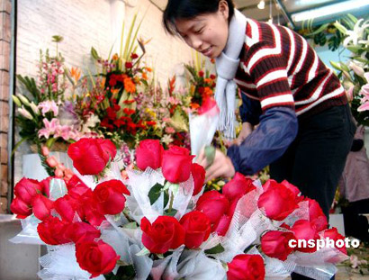圖:泉州情人節(jié)玫瑰熱銷(xiāo)