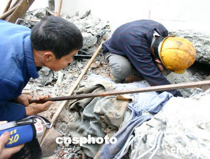 本社記者今天中午趕到事故現(xiàn)場(chǎng)看到,摔得變形的鋪軌車橫臥在地,碎裂的石梁、石塊滿布周圍,發(fā)生事故的橋墩至少有二十米高。消防人員和鐵路建設(shè)工人正努力在堆積的亂石中搜尋遇難者的遺體。部分當(dāng)?shù)卮迕褚嗉尤氲搅司仍辛兄,抬著?dān)架隨時(shí)待命、手執(zhí)鐵鍬幫助消防人員清理現(xiàn)場(chǎng)、親手刨開亂石搜尋遇難者遺體……
