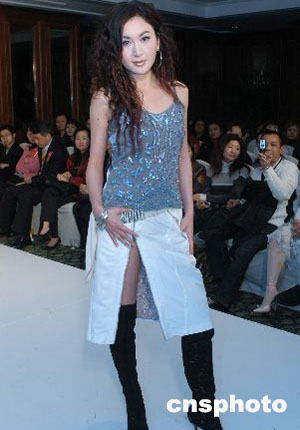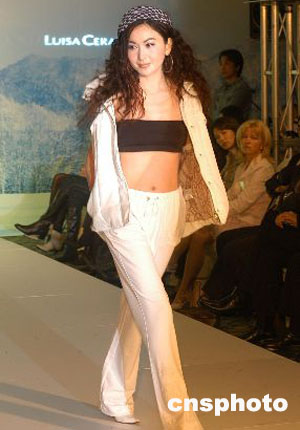 藝人溫碧霞2月14日在香港為德國兩大著名時裝品牌Hauber & Luisa Cerano 05秋冬時裝匯演客串模特,溫碧霞為時裝品牌Luisa Cerano展示05秋冬時裝。 作者:鄧慶樂