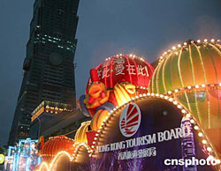 香港、澳門特區(qū)今年再度參加臺(tái)北元宵燈節(jié)。燈節(jié)將于本月十九日開幕,預(yù)計(jì)將有六百萬左右的臺(tái)灣民眾到場(chǎng)參觀。香港“金雞報(bào)喜詠香江”花車和澳門特區(qū)旅游局贊助的“夢(mèng)想前進(jìn)”燈座花車在臺(tái)北一〇一大廈旁亮相。作者:曾嘉