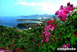 2月中旬的泰國(guó)布吉島三海風(fēng)光旅游區(qū),風(fēng)和日歷,絢麗的山花映襯著碧藍(lán)的大海,展現(xiàn)出一幅美麗畫(huà)卷。