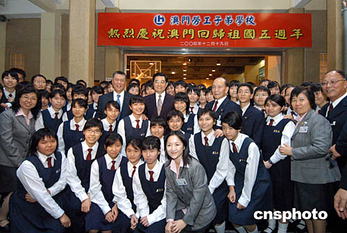去年十二月十九日,國家主席胡錦濤來澳出席第二任行政長官就職儀式期間,曾到澳門勞工子弟學(xué)校參觀,了解澳門基礎(chǔ)教育情況,并與該校學(xué)生親切對話,勉勵(lì)他們努力學(xué)習(xí),將來做好接班人的工作,把愛國愛澳精神薪火相傳。