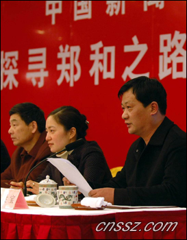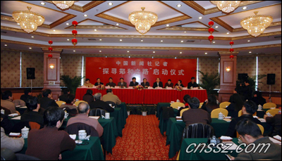為紀念鄭和下西洋六百周年,中新社派出文字記者韓勝寶、攝影記者蔣振江,帶了一百多個探尋題目,采訪海內(nèi)外鄭和研究的專家學(xué)者,探訪鄭和的遺跡,從政治、軍事、航海、經(jīng)貿(mào)、文化、科技、外交、宗教等領(lǐng)域,通過文字和圖片全方位向世人揭示許多鮮為人知的鄭和之謎,宏揚鄭和偉大的民族精神。探尋活動至七月十一日鄭和七下西洋紀念日前返回,歷時四個月。主要采訪地在東南亞一帶還有國內(nèi)的云南鄭和出生地、福建泉州鄭和停泊港和南京鄭和造船地。參加活動儀式的還有中新社副總編田惠明、總編輯助理張明新和江蘇分社社長陳光明。來自上海、南京、蘇州等地的新聞界人士也參加了儀式。