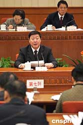 圖:中國民航總局局長楊元元作議案說明