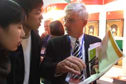 二月二十六日,第十屆中國國際教育巡回展在北京中國國際貿(mào)易中心開幕。參加本屆教育展的共有英國、法國、荷蘭等近二十七個國家和地區(qū)的三百五十多所高校和教育機構(gòu)。圖為中國學生在澳大利亞高校代表團展區(qū)咨詢出國留學事宜。作者:張勤