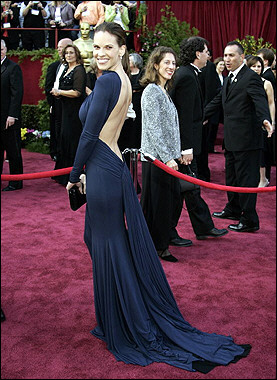 中新網(wǎng)2月28日電 來自外電消息,美國西部時間2月27日下午5:00(北京時間2月28日上午9:00),第77屆奧斯卡金像獎頒獎典禮在洛杉磯柯達(dá)劇院隆重揭幕,當(dāng)今美國影壇最炙手可熱的影星和各界嘉賓紛紛盛裝走上紅地毯。圖為獲最佳女主角的影星希拉里·斯萬克著露背裝出席頒獎禮。