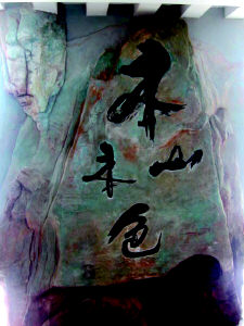 探班本山基地,印象最深的還是本山的辦公室。辦公室在三樓,本山帶著記者走到二樓半的時候猛地一抬頭,四個大字“本山本色”吸引了記者。站在“本山本色”的前面,本山嘆息了許久,他說:這意味老深長了!