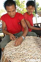 在有著濃濃的印尼民族風(fēng)情的巴厘島民族村,處處都留下了鄭和下西洋深深的印跡。中國的藤編工藝也在巴厘島民族村頗受當(dāng)?shù)啬贻p人青睞。據(jù)當(dāng)?shù)毓そ硞兘榻B,中國的藤編工藝技術(shù)也是當(dāng)年鄭和下西洋時(shí)傳授給當(dāng)?shù)氐。作?蔣振江