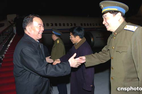 三月二日,參加十屆全國(guó)人大三次會(huì)議的各地代表陸續(xù)到達(dá)北京,中共中央政治局委員、新疆自治區(qū)黨委書記王樂泉(左)率新疆代表團(tuán)乘專機(jī)抵達(dá)北京西郊機(jī)場(chǎng)。作者:陳文