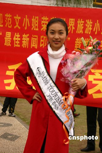 二月二十六日晚,第七屆世界旅游小姐總決賽在津巴布韋首都哈拉雷落幕。作為中國(guó)內(nèi)地首次選出的參賽代表,二十二歲的范文,憑借迷人的微笑、良好的氣質(zhì)和優(yōu)秀的語(yǔ)言能力等優(yōu)異表現(xiàn),受到世界各大新聞媒體的青睞,榮獲本次大賽的“最佳新聞媒體印象獎(jiǎng)”單項(xiàng)獎(jiǎng),向世界展示了中國(guó)旅游和中國(guó)女性的新面貌。