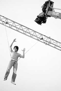 在陶喆新專輯《太平盛世》中的主要歌曲的伴奏下,陶喆第一次在鏡頭前表演了高空驚險(xiǎn)動(dòng)作。(郝曉楠)