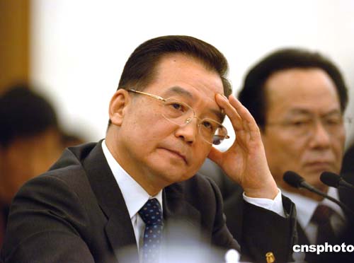 圖:溫家寶總理認(rèn)真傾聽人大代表的發(fā)言