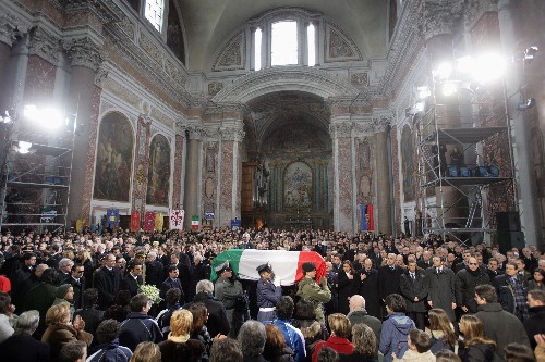 意大利7日在羅馬市中心為遭美軍槍擊身亡的意大利特工卡利帕里舉行國(guó)葬。意大利總統(tǒng)錢(qián)皮、總理貝盧斯科尼以及數(shù)千名民眾出席了國(guó)葬儀式。