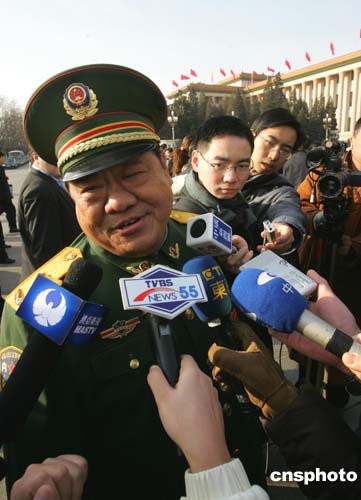 圖:臺灣記者就“反分裂法”采訪解放軍代表