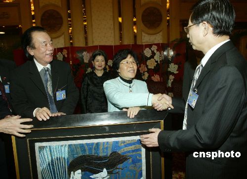 三月八日,國務(wù)院僑辦主任陳玉杰在北京世紀(jì)飯店會見列席全國政協(xié)十屆三次會議的海外華僑華人代表。作者:史利